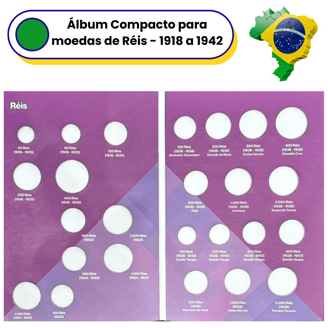 Álbum Vazio para as Moedas de Réis 1918 a 1942 - Por tipo