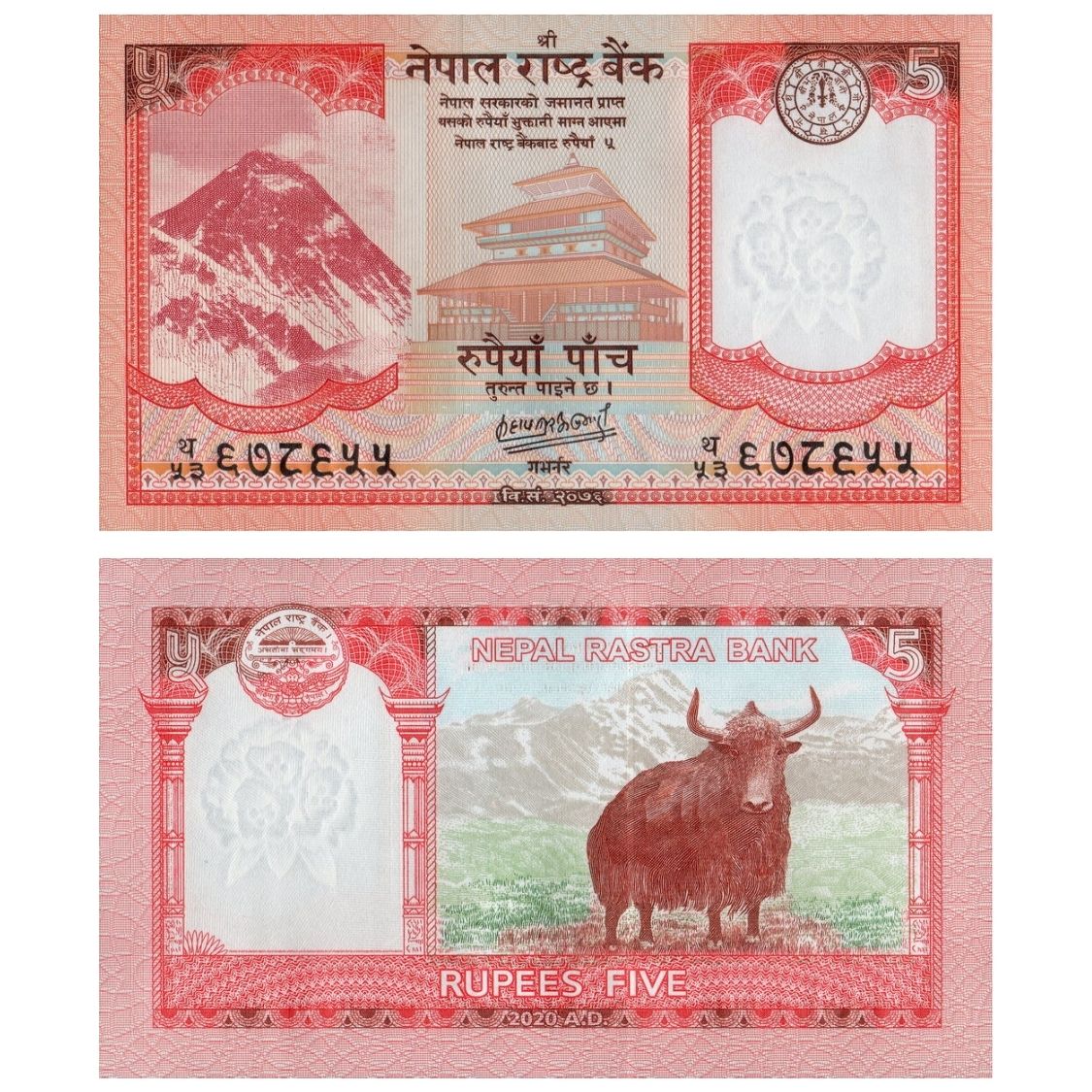 Nepal - Cédula de 5 Rupees 2020 - P-76b - Flor de Estampa
