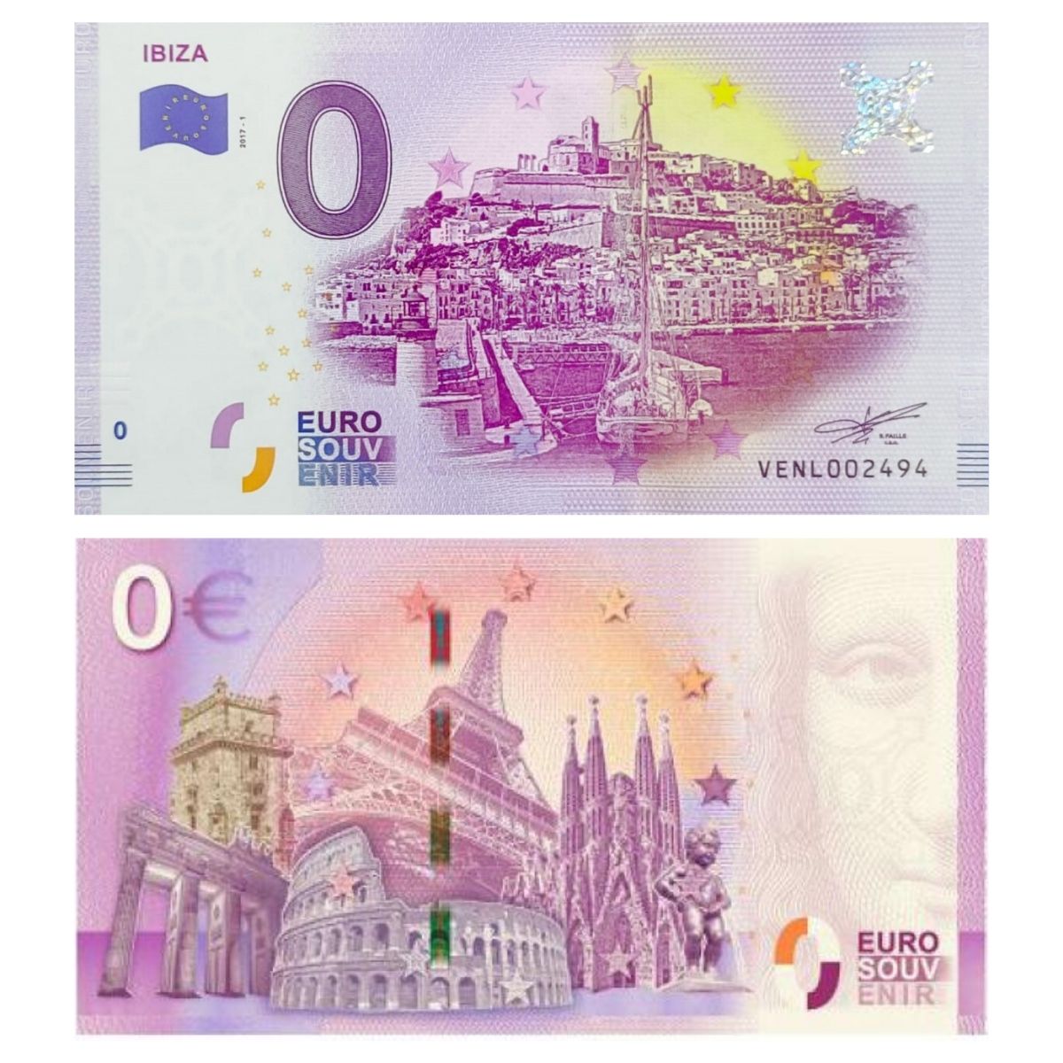 O Zero Euro é uma cédula de souvenir, com produção e impressão autorizada pelo Banco Central Europeu (BCE) e incluindo as mesmas características de segurança de uma cédula de Euro normal, porém, com o valor 0 não sendo possível utiliza-la como cédula de circulação normal.