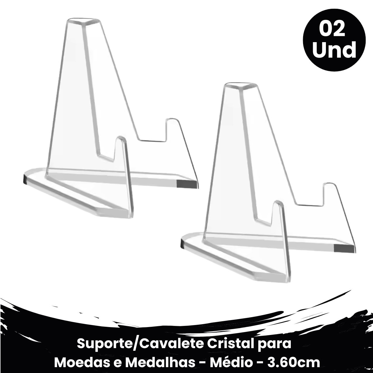 02 Suportes/Cavalete para Moedas e Medalhas - Cristal - Médio / 3.60cm