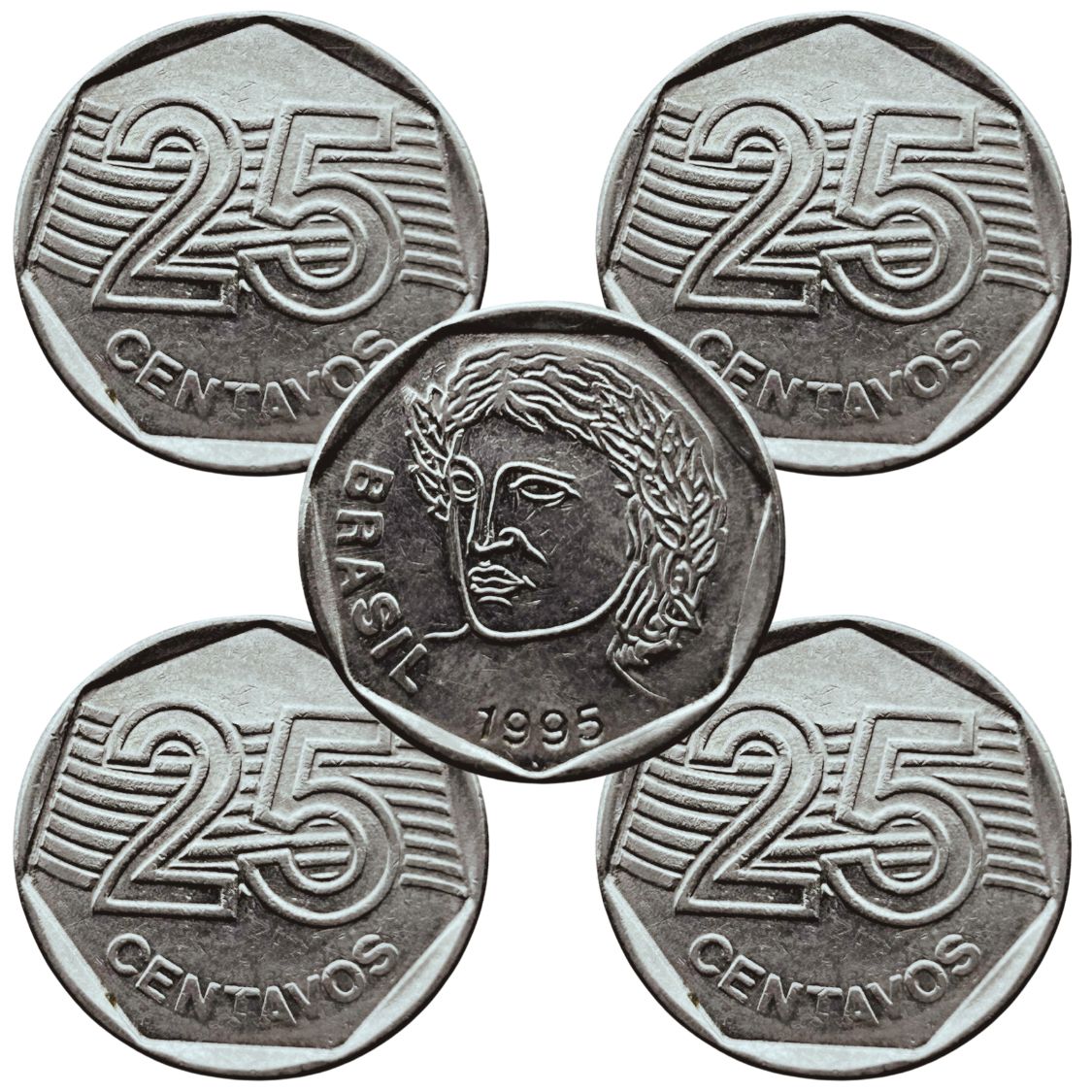 04 Moedas de 25 Centavos 1995 - V-451 - Circuladas - Aço Inoxidavel - 23.5mm - 4,78g