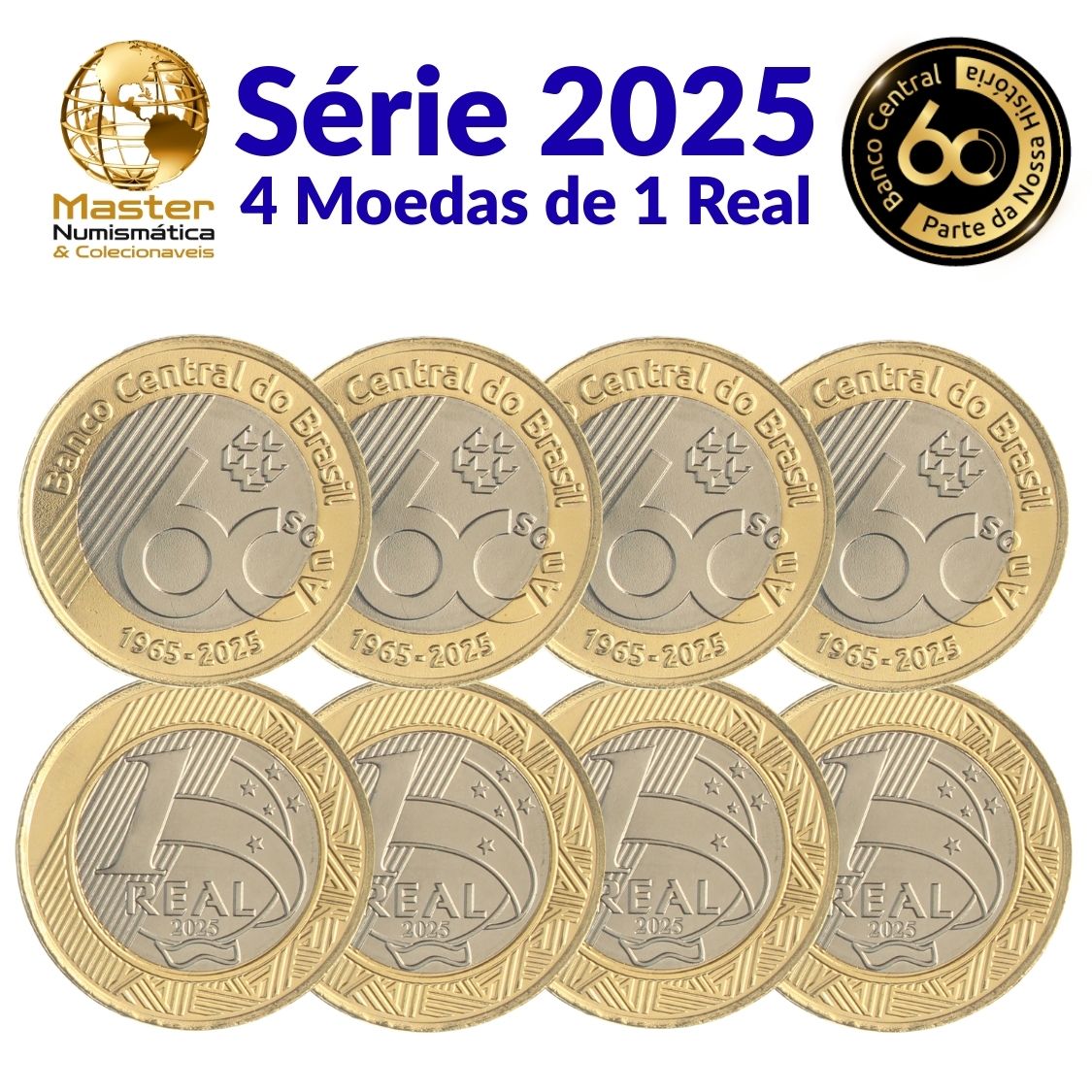 Lançamento - 04 Moedas de 1 Real 2025 - 60 Anos do Banco Central - Flor de Cunho