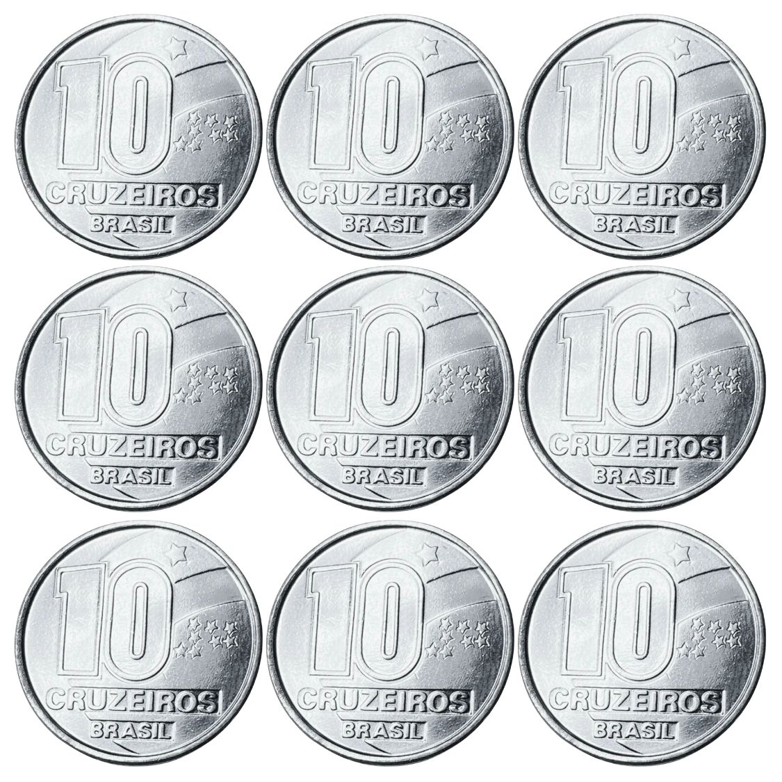 Promoção - 9 Moedas de 10 Cruzeiros 1991 - V-418 - Seringueiro - Aço Inox - Flor de Cunho
