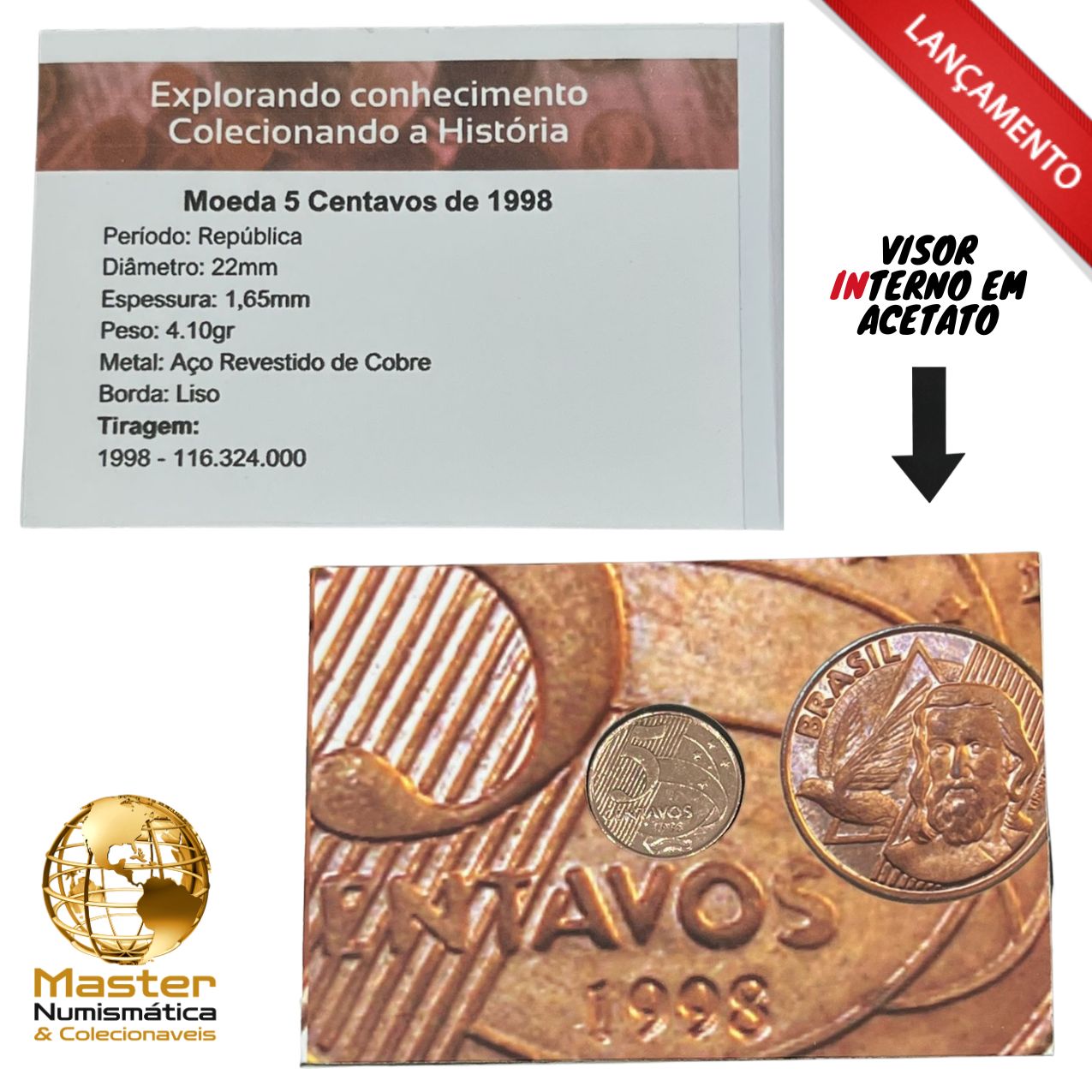Cartela com visor contendo a moeda de 5 Centavos 1998 - V-464 - Circulada - Rara