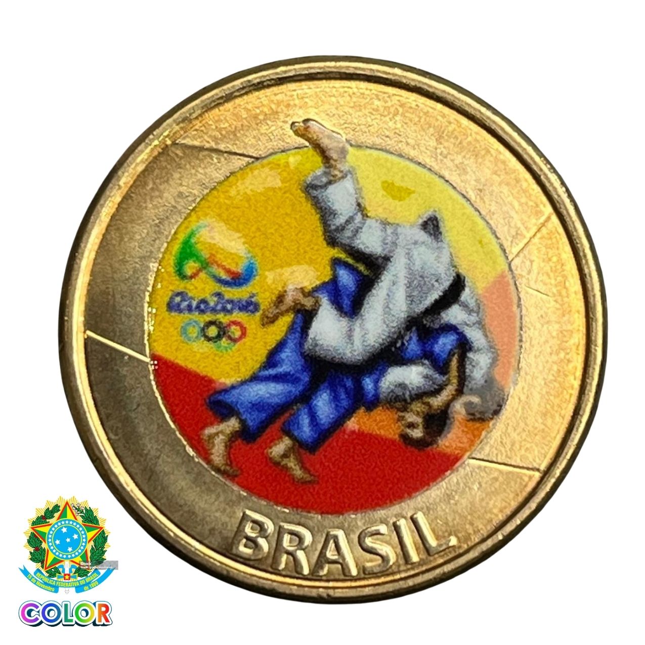 Colorida - Moeda 1 Real 2015 - Judô - V-618 - Colorizada - Flor de Cunho