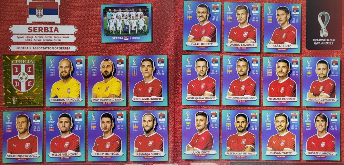 Seleção da Servia Completa - SRB1 a SRB20 - 20 Figurinhas - Grupo G - Copa do Qatar 2022 - Original Panini